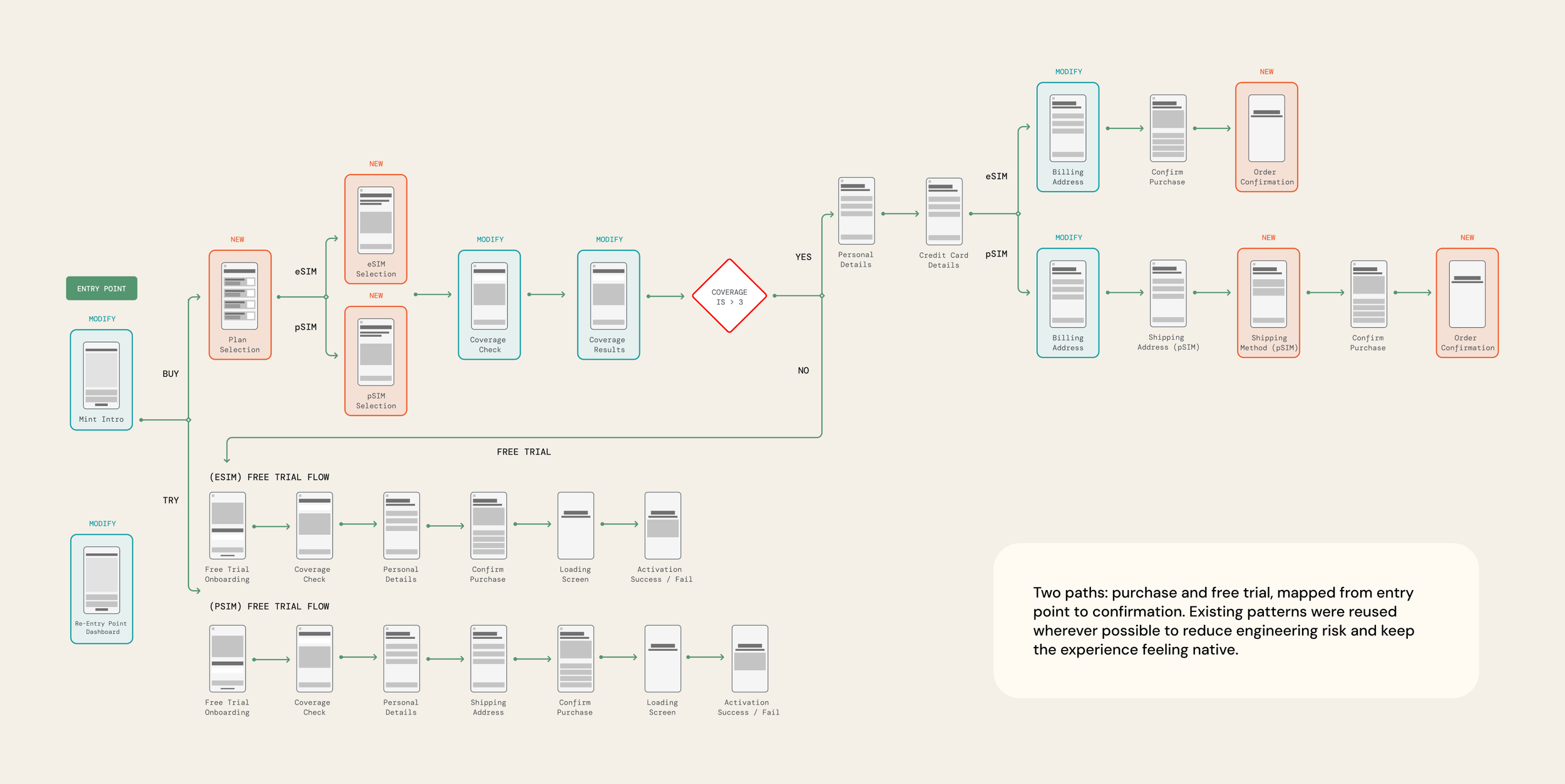 Native meant we could support eSIM compatibility and coverage checks upfront. This wasn't just a UX enhancement. It was turning the app into a real acquisition surface.
