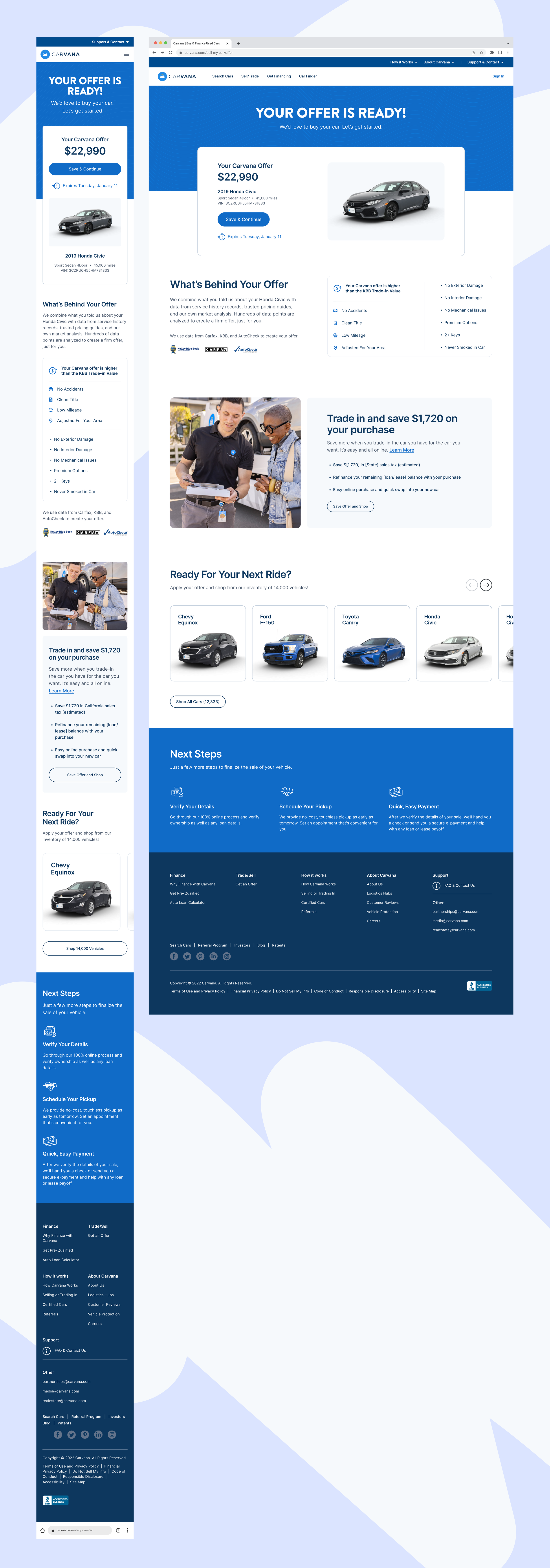 I led the redesign end to end, from landing through offer, alongside Carvana's evolving brand direction.